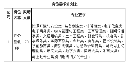 为进一步充实学院师资队伍,拟对部分专业招聘2025-2026学年度任务型教师70名,现将人才招聘有关事项公告如下: