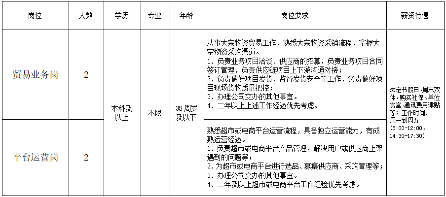 经公司研究决定,拟招聘工作人员4名,具体情况如下: